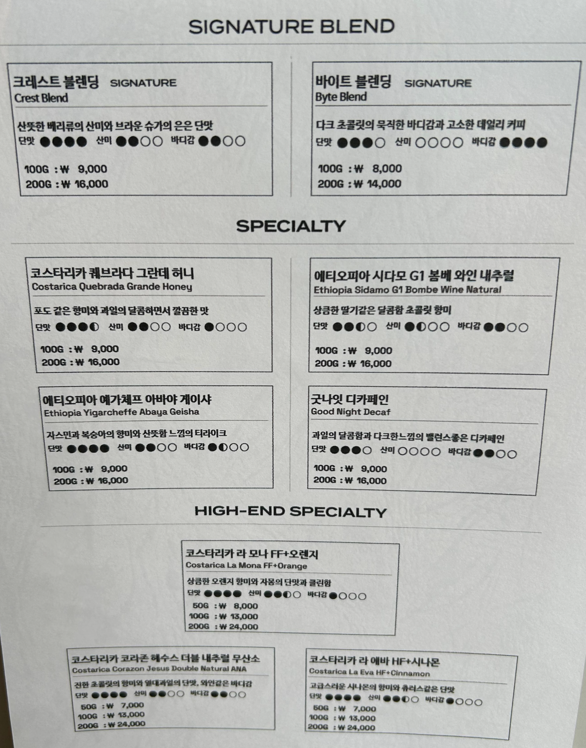 ☑ 원두 및 드립백 대표 메뉴 가격 _(25.09.04 기준)